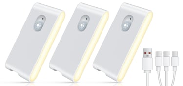 Recargable y de bajo consumo: esta luz nocturna cuenta con una batería interna recargable de 500 mAh, por lo que no necesitás pilas descartables. Es una opción más ecológica y económica. En modo encendido permanente ofrece hasta 16 horas de uso continuo, mientras que utilizando el sensor de movimiento puede durar hasta 2 meses con una sola carga. Además, permite cargar hasta 3 luces al mismo tiempo mediante un cable Type-C 3 en 1, lo que te ayuda a ahorrar el equivalente a unas 80 pilas AA por año por cada luz.